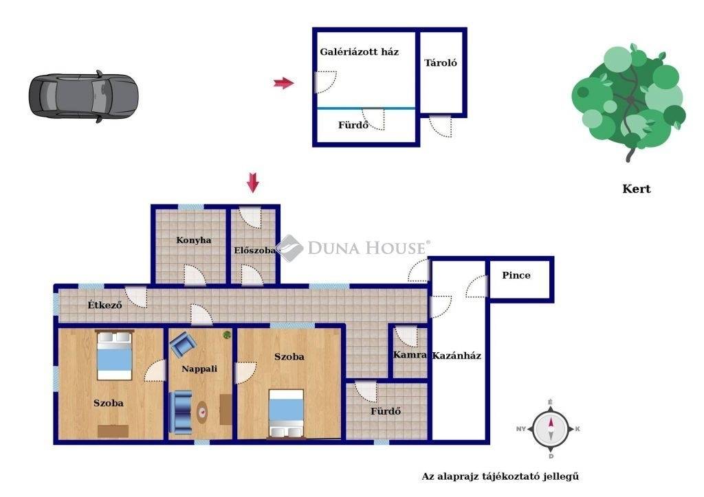 Kis garzonlakásnak tökéletes vagy vendégvárónak, nyári konyhának, tároló helyiségnek. Tégla építésű, az alapja 4 méter X 4,5 méter. Galériázott megoldással. Földszinten kialakítható konyha és nappali fürdőszobával. Tető fedése lemezborítással. Mellette külön bejáratos tároló található. Fűtést kandallóval tervezték. Ez az épület nincs felvezetve a térképszelvényre.