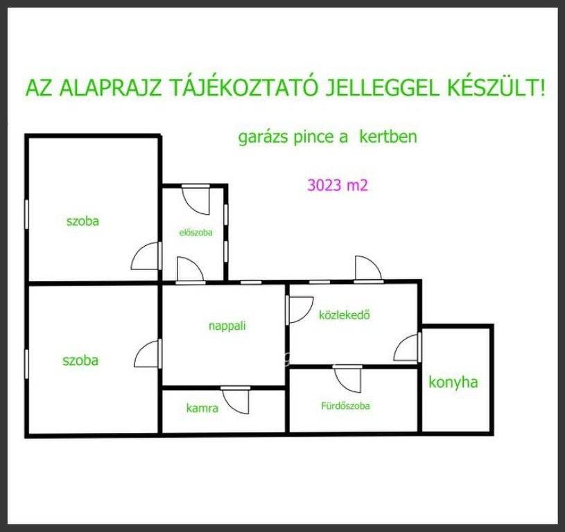 Helyiségei: előszoba bejárattal, a 2 szoba nappali innen nyílik a kamra helyiség konyha. a nagy terek, az előtér fürdő Wc előtti tér előtt.