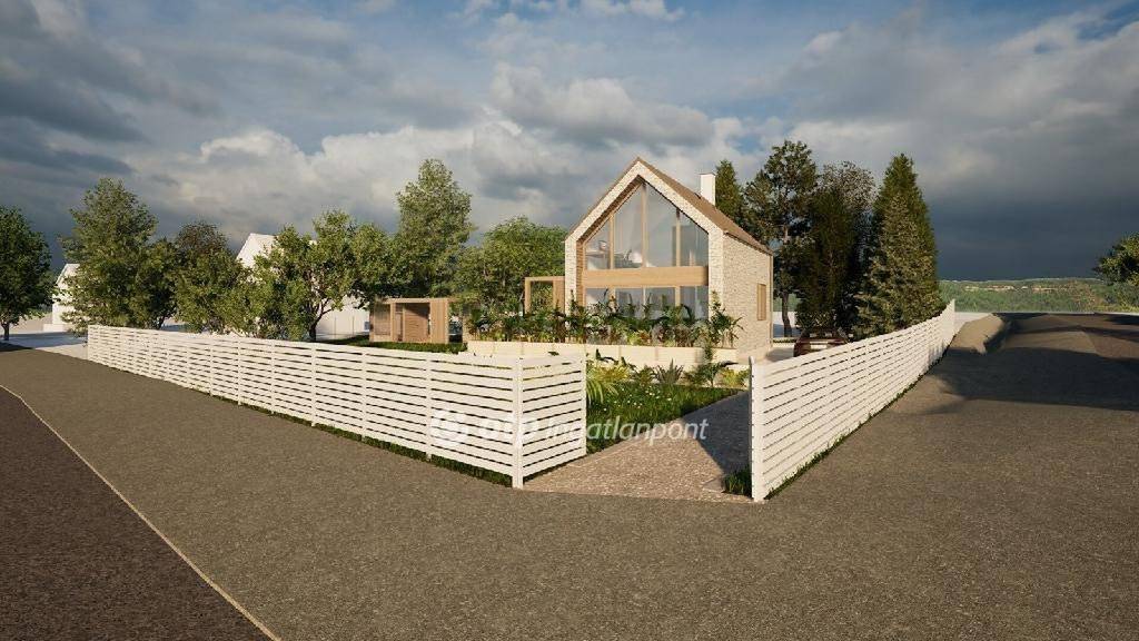 Panorámás építési telek eladó Csopak Öreghegyen – engedélyezés alatt álló modern tervvel