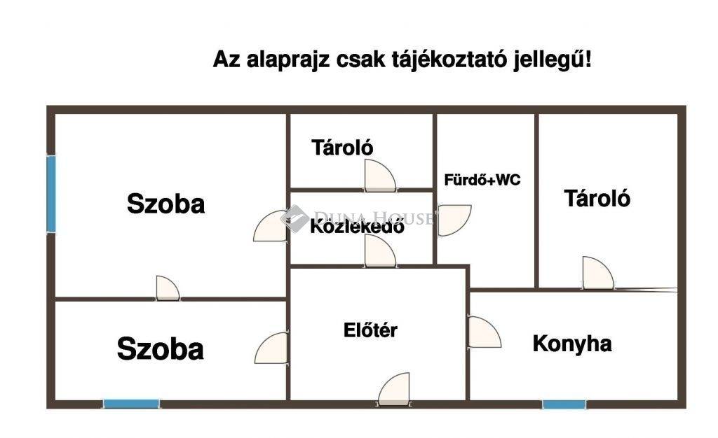 A helyiségek jelenlegi kialakítása :2 szoba ,közlekedő,előszoba,konyha+étkező,kamra,fürdő+WC.