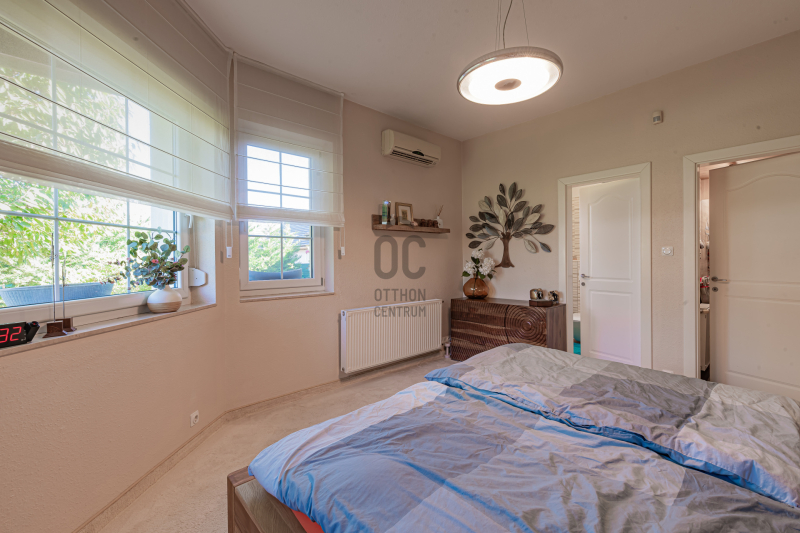 A fűtés-hűtés hőszivattyús rendszeren keresztül történik, minden helyiségben saját állítási lehetőséggel, az összes nyílászáró korszerű, hőszigetelt műanyag, az árnyékolásukról minden esetben redőny szúnyoghálóval gondoskodik. A tetőre napelemek is felszerelésre kerültek. A hálószobákon kívül mindenhol drága, nagyméretű lapok a padlóburkolatok, az elképesztő méretű fürdőszobában jakuzzi és épített zuhany biztosítja a kényelmet.