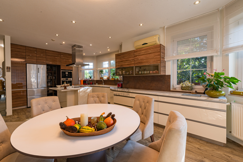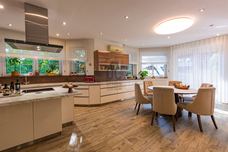 Eladásra kínálunk Pilisvörösvár legkedveltebb, újszerű kertvárosias részén rendkívül csendes de a központhoz még is közeli utcájában,exkluzív, kívül és belül egyaránt elképesztően színvonalas, mintegy 260nm-es újszerű, alapvetően 2005-ban épült de pár éve teljesen felújított, rendkívül nívós megjelenésű és csúcs színvonalú műszaki tartalommal bíró egy szintes családi házat. A ház megépítése során külön hangsúlyt helyeztek az élhető, nagyméretű, világos terek kialakítására, valamint minden helyiségben óriási nyílászárok biztosítják a természetes fényt.