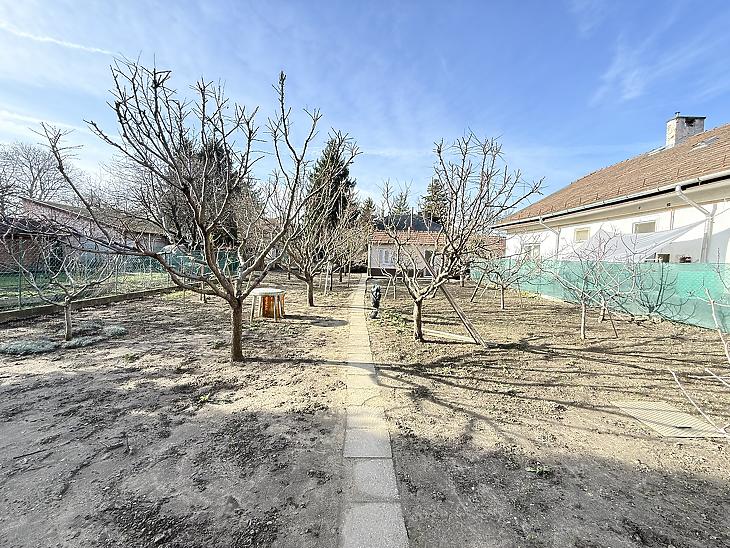 A 880 m²-es, 15 méter utcafronttal rendelkező telek igazi kertvárosi hangulatot áraszt. A kertben 25 darab termő gyümölcsfa található, amelyek nemcsak esztétikai értéket képviselnek, hanem bőséges termést is biztosítanak az új tulajdonos számára.