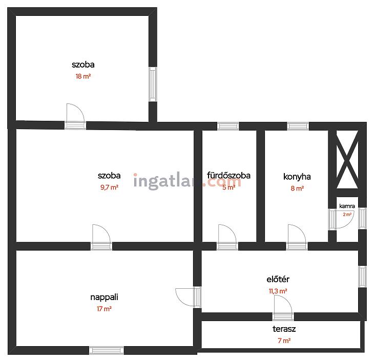 - Plusz egy fedett kocsibeálló, két autó számára is.