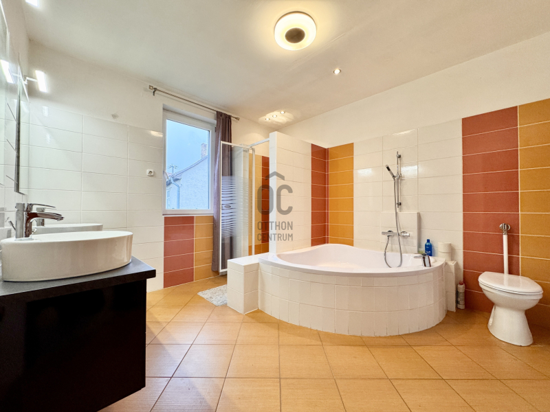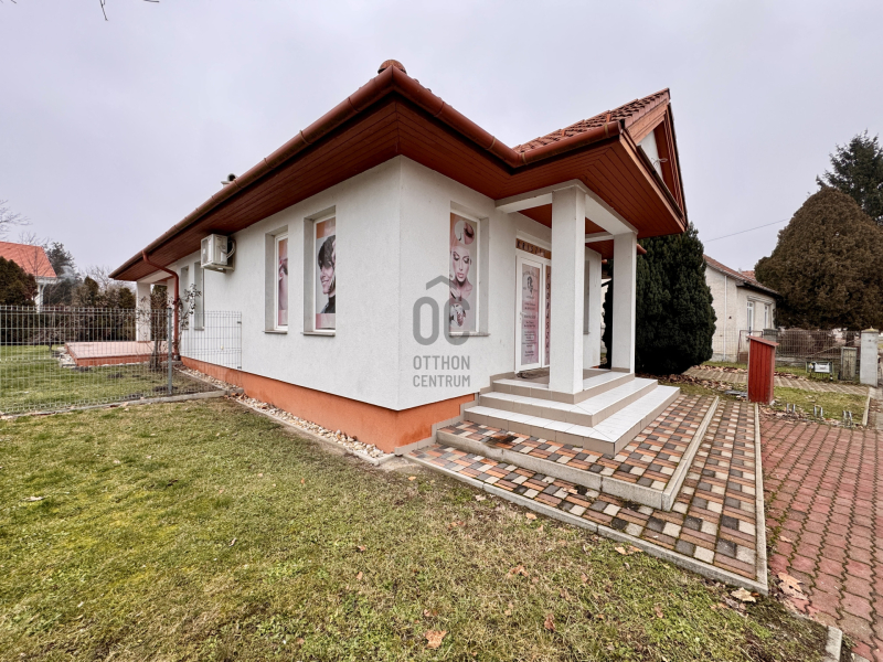 30 nm-es üzlethelyiség, mely szépségszalonnak van kialakítva. Több mint 10 éve fodrász bérli. A bérleti díj bőven fedezi a ház rezsijét, sőt még bőven marad is belőle. Ha valaki viszont még szobát szeretne kialakítani arra is van lehetőség, mivel az üzlethelyiség és ház közötti fal úgy lett kialakítva, hogy összenyitható legyen. Tehát nappali+3,4 szobássá alakítható a ház.