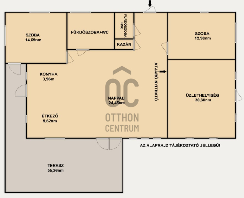 - napfényes DNY-i tájolású, nagy nyílászárókkal ellátott nappali 55 nm-es terasszal