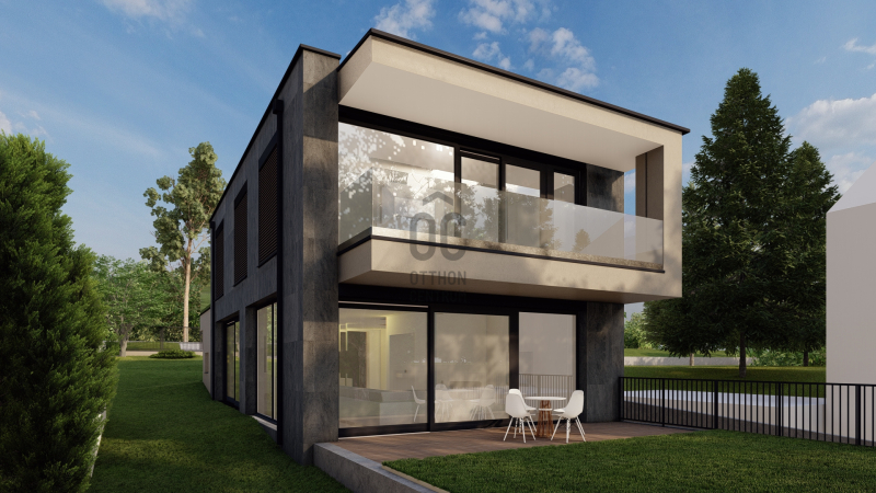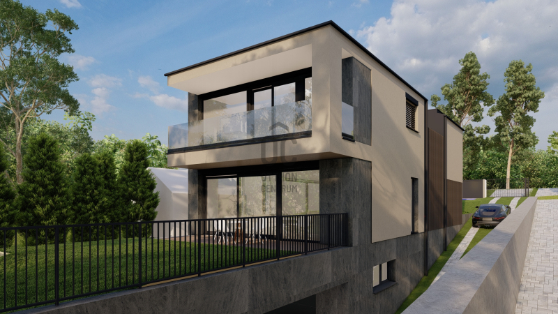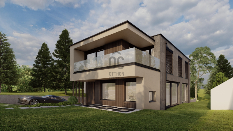 * Tervezett ház: nettó 354 m2 (bruttó 425 m²) alapterületű, 3 szintes, 6 szobás, hatalmas üvegfelületekkel és modern gépészeti megoldásokkal.