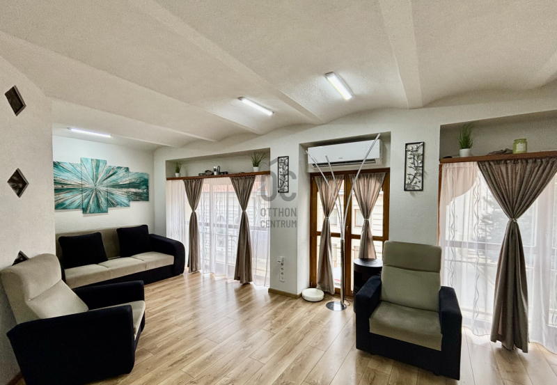 Kecskemét belvárosának frekventált, mégis csendes utcájában kínálunk megvételre egy 90 m²-es, első emeleti, teljes körűen felújított ingatlant, amely kiváló választás lehet üzleti tevékenység számára.