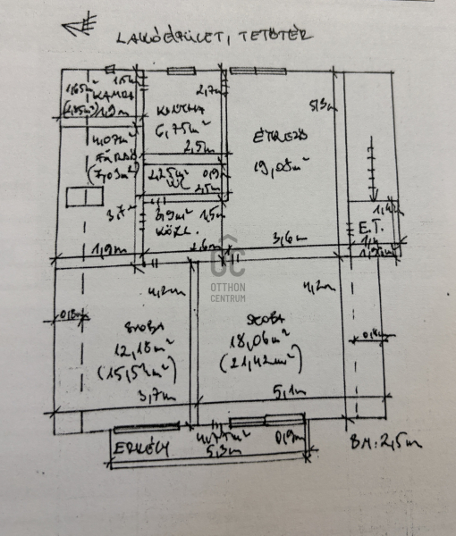 Földszint: előszoba, konyha-étkező, 2 szoba, folyosó, külön WC, fürdőszoba (walk-in zuhanyzó), 2 tároló.