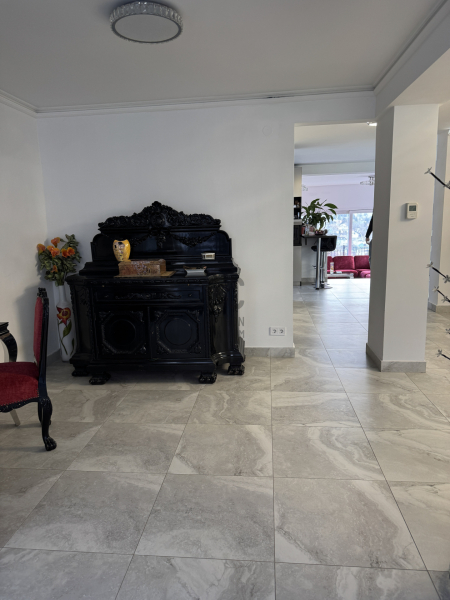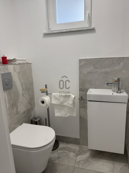 A nappali tágas, világos, közvetlen teraszkapcsolattal. A konyha luxus minőségű beépített bútorokkal, gépekkel, reggelizőpulttal – igazi központi tér családi és baráti estékhez. Minden szinten fürdőszoba, szeparálható lakrészek, több bejárat – akár nagycsaládnak, akár több generációnak, akár otthon + vállalkozás kombinációhoz is ideális.