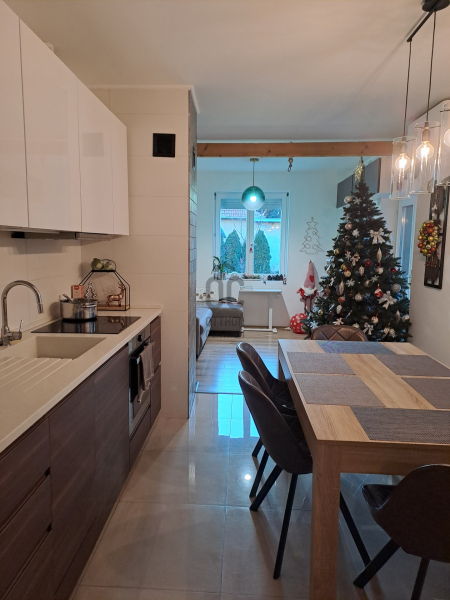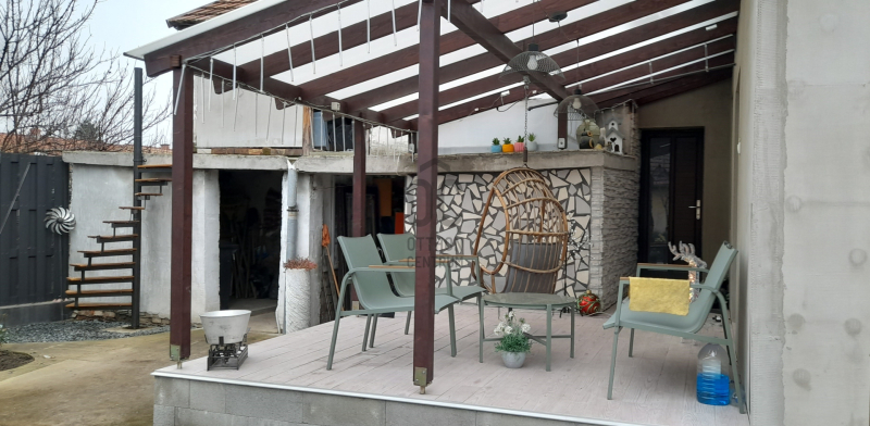 A ház kívül szigetelt, a színezés az új tulajdonos ízlésére vár, belül viszont rendezett, szépen karbantartott állapotú. A kellemes hőérzetről cirkófűtés, padlófűtés, valamint egy hangulatos kandalló gondoskodik, nyáron pedig klíma biztosítja a komfortot. Kellemes kikapcsolódást a hangulatos fedett terasz biztosit, közvetlen kertkapcsolatával. Gépkocsi elhelyezését egy könnyűszerkezetes garázs elektromos garázskapúval biztosítja.