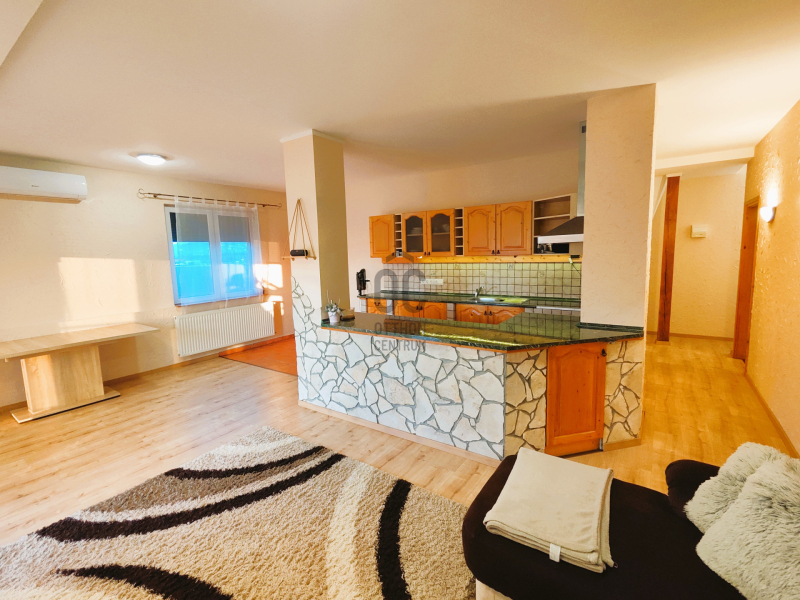 Az elosztás kiváló: a helyiségek tágasak, világosak, élhető tereket biztosítanak. Mindkét szinten önálló konyha található, így az ingatlan kiadásra is kifejezetten alkalmas.