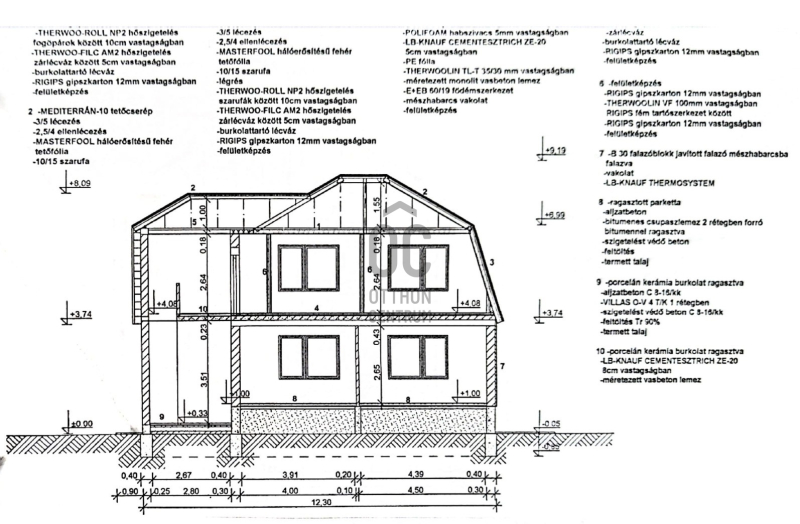 A ház téglaépítésű: az alsó 91 m²-es szint a ’80-as években, a felső 84 m²-es szint pedig a 2000-es évek elején készült. A ráépítés során az alsó szint is felújításon esett át. Az elektromos hálózat korszerűsítése 2020-ban történt.
