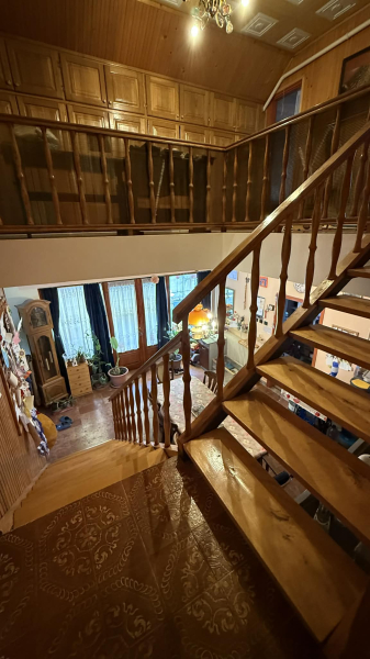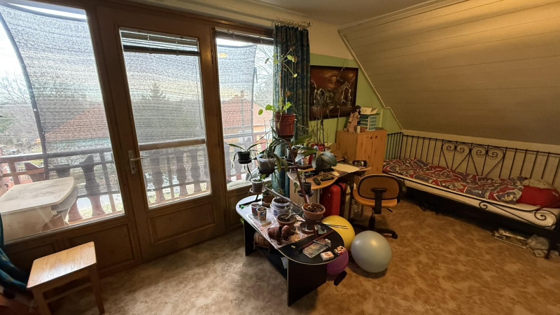 Az emeleten,vagyis félemeleten szinteltolással egy nagy szoba,az emeleten pedig kettő nagy és egy kisebb szoba,folyosó beépített szekrényekkel és fürdőszoba található zuhanyzóval.