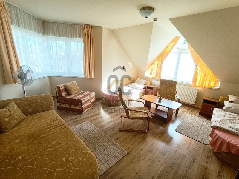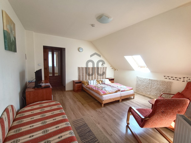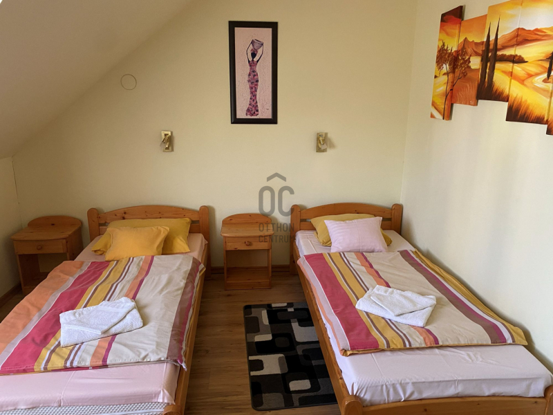Az emeleti tetőtérben négy vendégszoba található, mindegyik saját fürdőszobával ellátott, TV-vel, kis hűtővel és éjjeli szekrényekkel felszerelt. A szobák összesen 8 fő befogadására alkalmasak, de mindegyik pótágyazható, így akár 13 fő elszállásolása is megoldható.