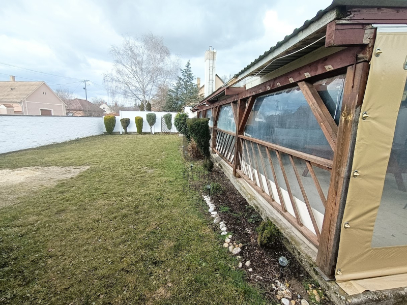 Az udvaron egy teljesen fedett, oldalról ponyvával zárható, tágas terasz található, amely akár 80 fő kényelmes leültetésére is alkalmas, így kiváló helyszínt biztosít családi és céges rendezvények, ballagások, születésnapok vagy kisebb lakodalmak lebonyolítására. A terasz tetőszerkezete 2024-ben teljes körű felújításon esett át.