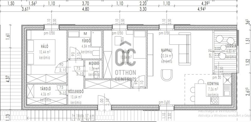- 69 nm - Nappali- amerikai konyha, 2 hálószoba, fürdőszoba, tároló, 5 nm loggia