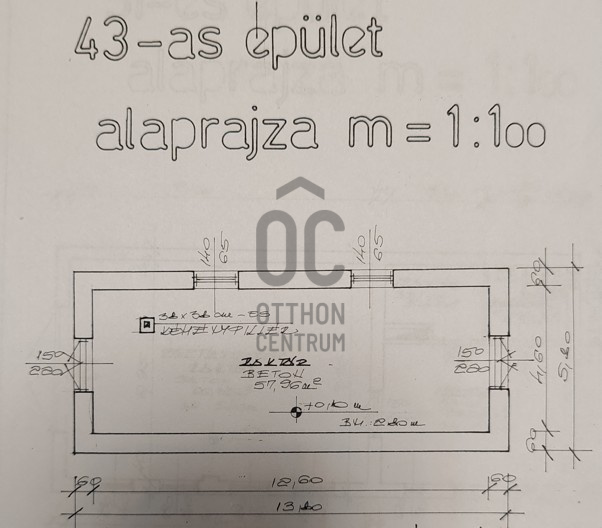 -58 nm alapterületű kétbejáratú, átjárható raktár