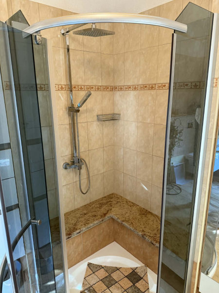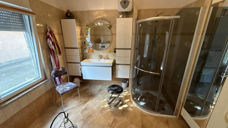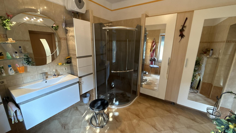 A konyhából de akár külön bejáraton is egy külön lakrészbe érünk,ami kb 30 m2-es,saját fürdőszobával.