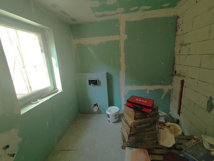A lakás 2025-ben épült, jelenleg még tartanak a munkálatok. Az építés során új falakat és tetőt húztak fel, újak a lécek, gerendák, csatorna. Beton alapzattal rendelkezik. Kívülről 10 cm-es szigetelést kapott. Belül jelenleg a gipszkartonozási munkafolyamat zajlik. A szobába laminált padlót fognak lehelyezni, a többi helyiséget járólappal fogják burkolni. Fürdőszobájában zuhanyzót alakítanak ki. A fűtésről inverteres légkondicionáló berendezés fog gondoskodni, amit kifejezetten fűtésre optimalizáltak.