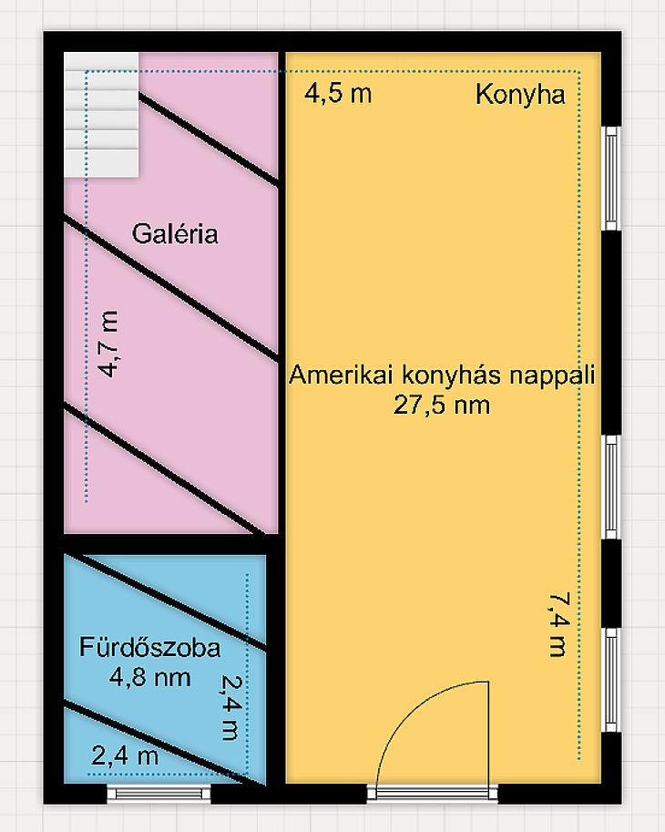 Belmagasságának köszönhetően a hasznos alapterületet 7 nm-es galéria kialakításával növelték.