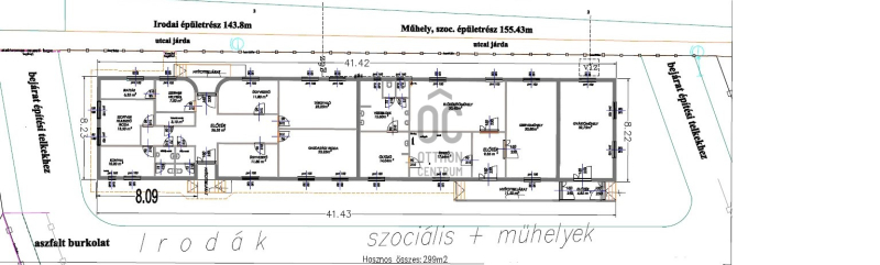 Az ingatlan 4685m2-es telken helyezkedik el, melyen 340 m2-es épület található, mely 7 szoba vagy iroda, 2 konyha, 1 öltöző, 4 wc, folyosó, öltöző, gépház, 2 zuhanyzó található.