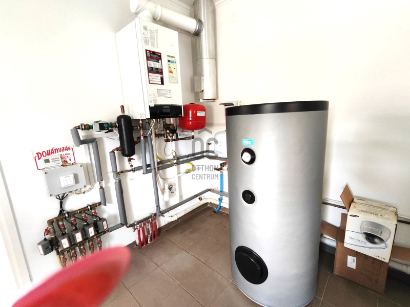 Az épület gáz cirkós fűtésű, melyhez nagy méretű meleg víz tartály tartozik.