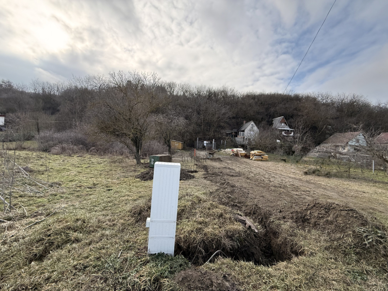 A telek földmérő által hivatalosan ki lett mérve a telek és cölöpökkel kijelölve.