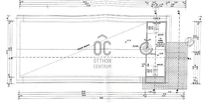 A telek utcafrontja 33 m, az udvar alkalmas kamion befogadására is.