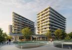 A lakóépületek modern, letisztult megjelenése a Duna vonalvezetését idézi.