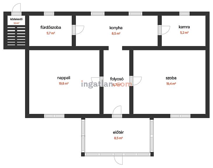 -A ház alapterülete 77,3 nm.