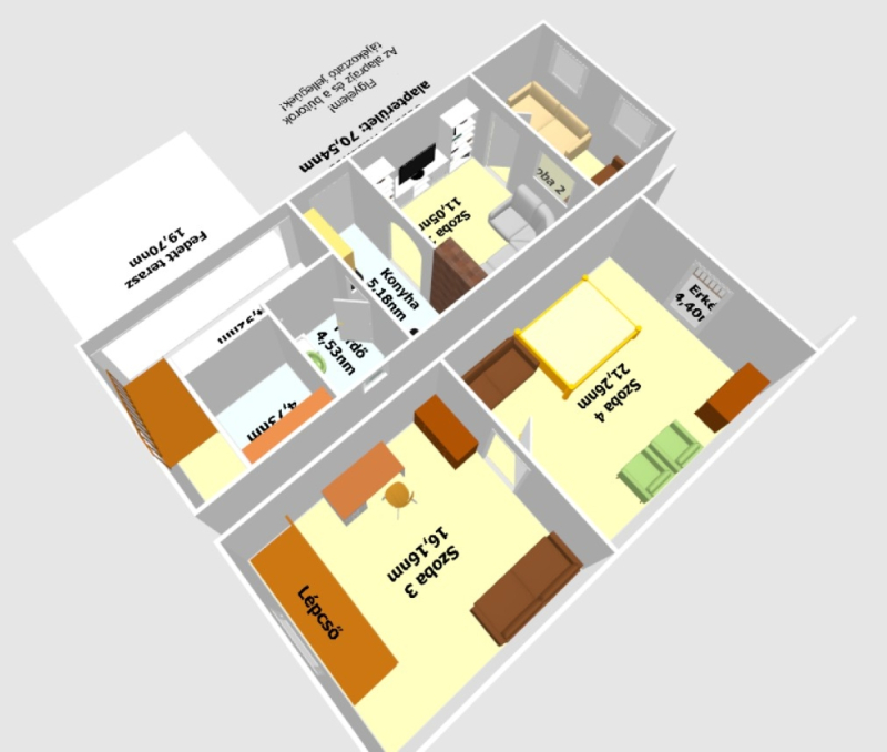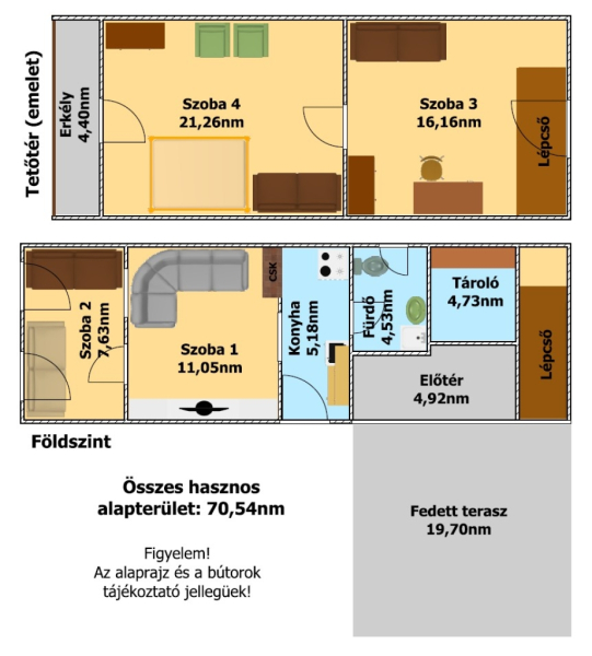 Az épület hasznos alapterülete összesen 70,54nm melyben található: