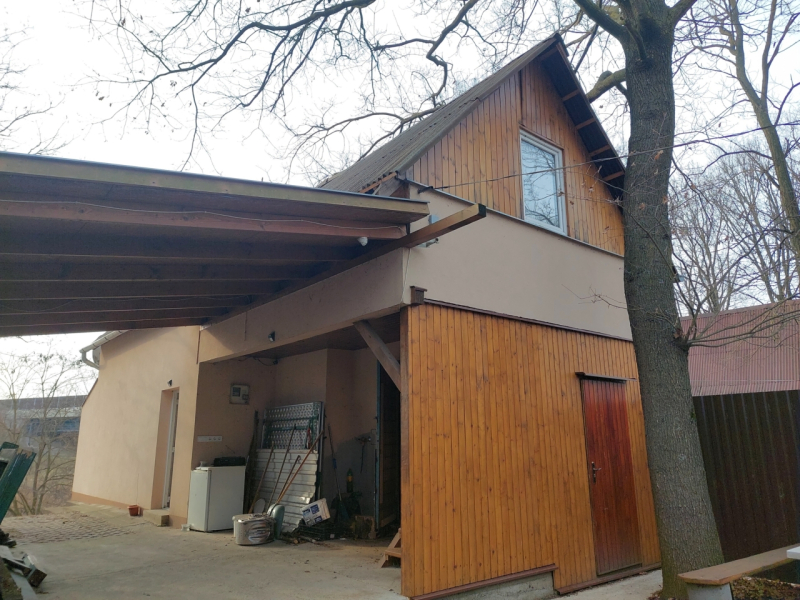 Az épület mellé egy saját kocsi beálló és egy nagy 20nm-es fedett terasz is készült a hozzá tartozó asztalokkal és székekkel. Ezen kívül az épület mögött egy jó állapotú bográcsozó és szalonnasütő hely is készült. Továbbá a külső falazat 10cm-es nikecell szigetelése és nemes vakolatozása is megtörtént, mely a fűtési költség csökkentésében játszik komoly szerepet. Ezen felújítások eredményeként állandó lakhatásra is alkalmas a nyaraló.