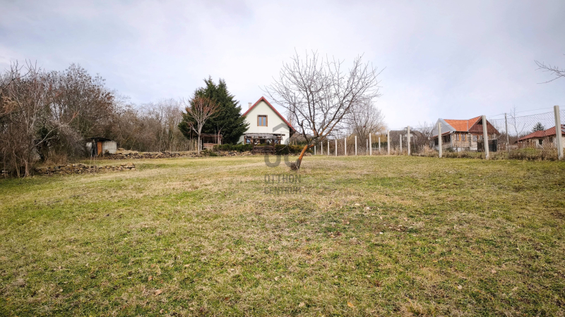 A 2377 nm telek az aszfaltoz út felől bazaltkő kerítéssel és elektromos kapuval rendelkezik, jelenleg 2 oldalról zárt. A telek minden pontjáról csodálatos panoráma tárul elénk a tanúhegyekre, és a Balaton víztükre is több helyen megcsillan. Az ingatlan intimitását az egyik oldalról ölelő erdőterület is biztosítja.