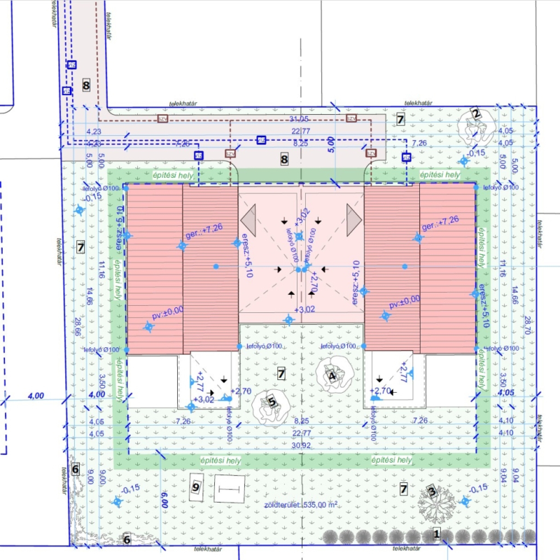 Igény szerint komplett engedélyeztetett tervekkel 2 db. ikerház megépítésére, összesen 4 db. lakásra!