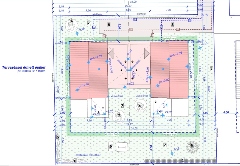 Tervezett lakóépület beépített alapterülete: 264,67 m2