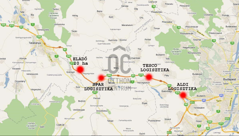 Eladó 19,2 ha beruházási terület az M1 mellett 60 %-os beépíthetőséggel