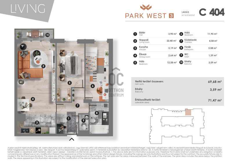 A 69 négyzetméteres lakás három tágas szobával rendelkezik, amelyek világosak és barátságosak, így tökéletesen alkalmasak családok, fiatal párok vagy akár egyedülállók számára is. A lakásban található egy jól felszerelt fürdőszoba, amely a mindennapi kényelmet szolgálja, és egy 4 négyzetméteres erkély, ahol kellemes reggeli kávézásokra vagy esti pihenésekre nyílik lehetőség. A fűtés házközponti, egyedi méréssel, míg a mennyezethűtés gondoskodik arról, hogy a nyári hónapokban is kellemes hőmérsékletet biztosítson. Az ingatlan modern kialakítása és energiatakarékos megoldásai révén ideális választás a mai kor elvárásainak megfelelően. A környék rendkívül előnyös adottságokkal bír.