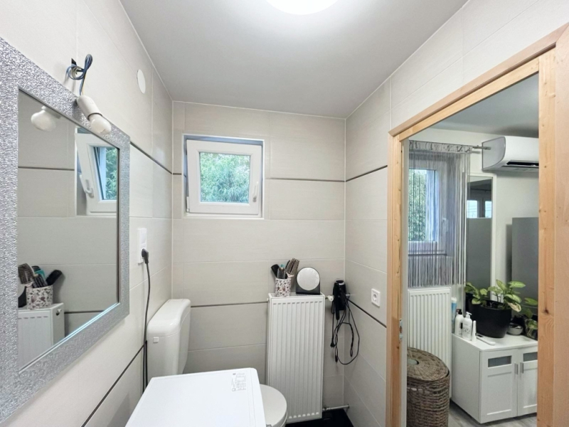 -Felső szinten modern konyha étkezővel, nappali, fürdőszoba WC-vel