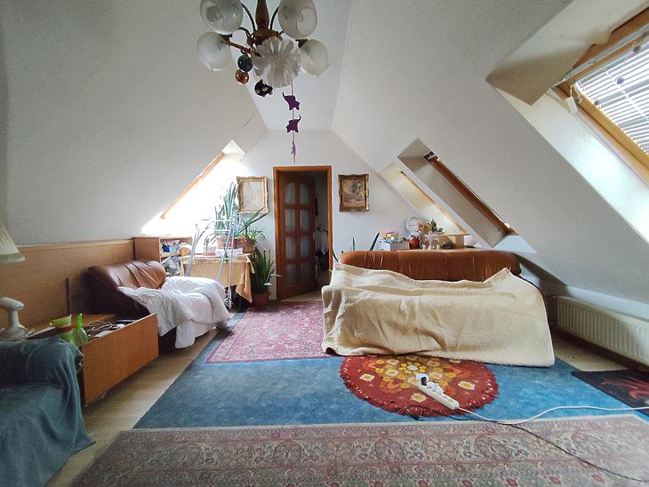 Békásmegyer-Ófaluban ELADÓ egy belső kétszintes lakás ÜZLETHELYISÉGGEL!