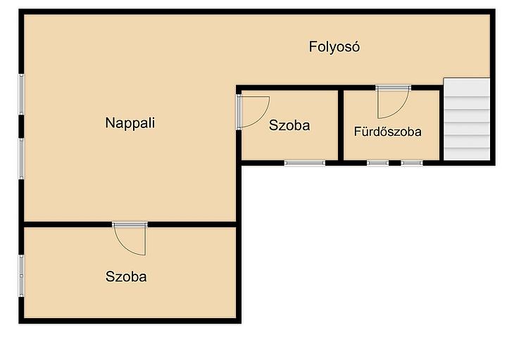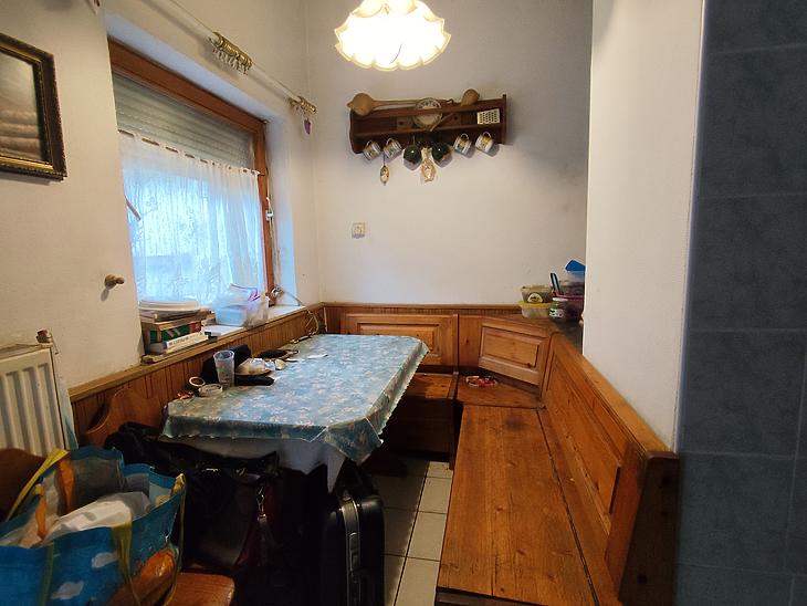 A LAKÁS jelenlegi elosztása 3 szobából, konyhából, étkezőből és egy fürdőszobából áll, ebből a konyha és az étkező a földszinten található, az emeleten pedig 3 szoba és a fürdőszoba.