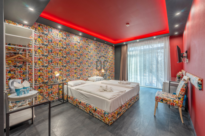 A szálloda különlegességét a szobák egyedi hangulatvilága és design megoldásai adják. A tágas szobák különböző igényekhez igazodnak – két- és háromágyas kialakítás, utcai és belső udvari tájolás, design szobák és apartmanok egyaránt megtalálhatók.