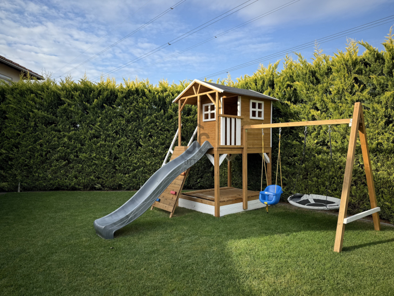 A vételár tartalmazza a berendezés nagy részét a beépített bútorokon kívül is. (Játszótér, kerti sütögető stb.) Komoly szándék esetén ezek egyeztetésre kerülnek.