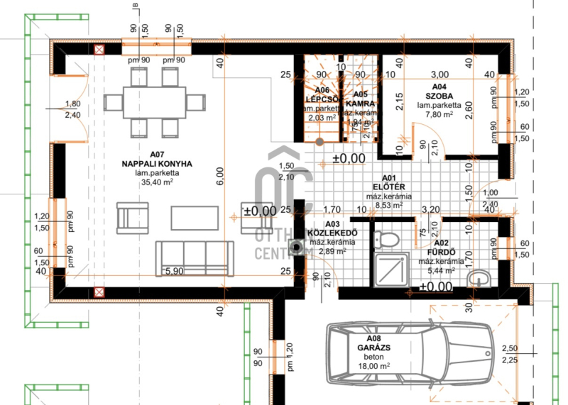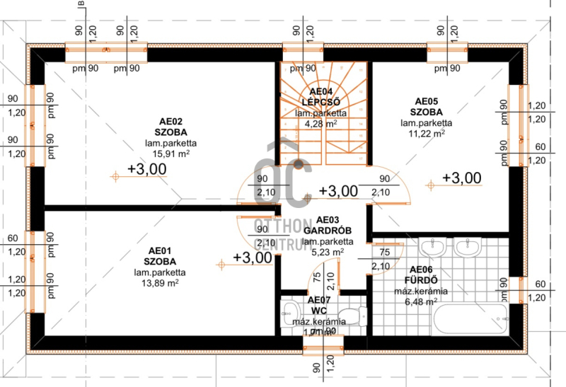 A ház bruttó 141 m², melyből 120 m² nettó lakótér, praktikus elrendezéssel, 5 szobával.