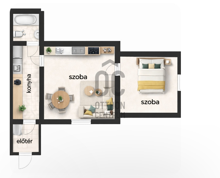 nappali-étkező + hálószobás (2 szobás) lakás, amely ideális választás állandó otthonnak, nyaralónak vagy befektetésnek.