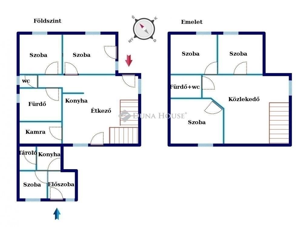 A földszinti rész 73,3 m2, ahol egy hálószoba, fürdő, külön wc, konyha étkezővel, és egy kamra található.