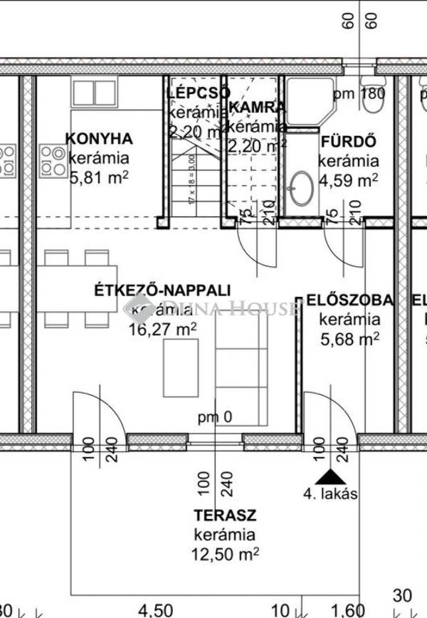 Helyiségek elosztása: