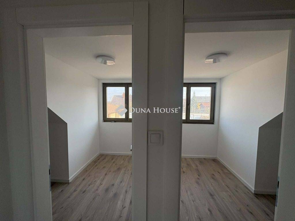 A lakás két szintes, tetőtér-beépítéses, korszerű műszaki tartalommal rendelkező ingatlan, saját tulajdonú telekrésszel.