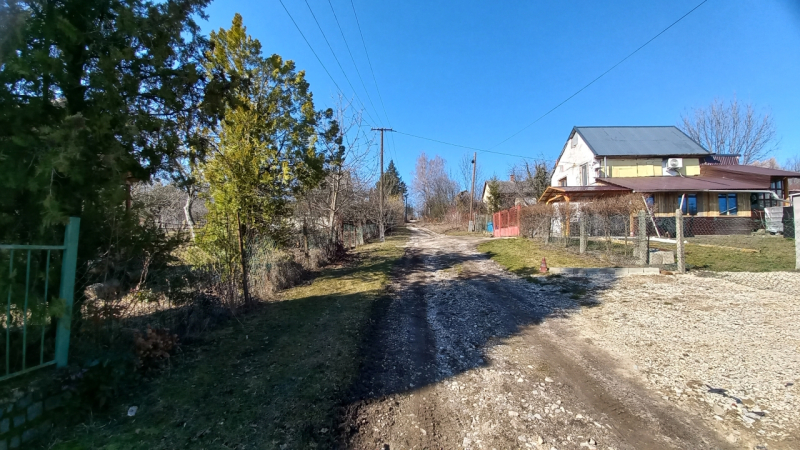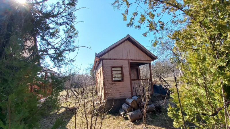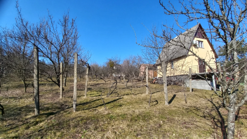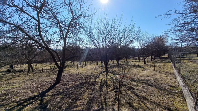A telek dupla, 2000 négyzetméteres, termő gyümölcsfákkal, egy 63 négyzetméteres lakhatásra is alkalmas épülettel, melyhez egy 14 négyzetméteres terasz és pince is tartozik.