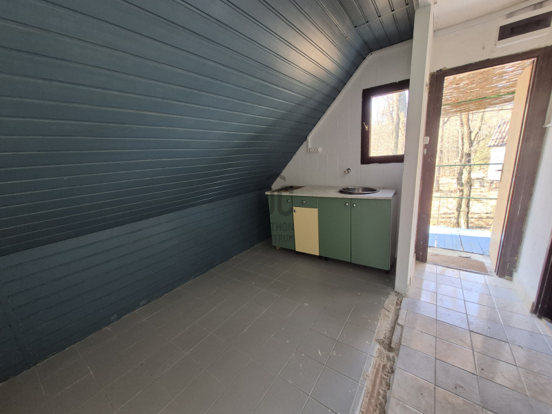 A földszinten 2 szoba, egy konyha, egy fürdőszoba és egy mellékhelyiség került kialakításra, az emeleti rész külső feljáróval érhető el.